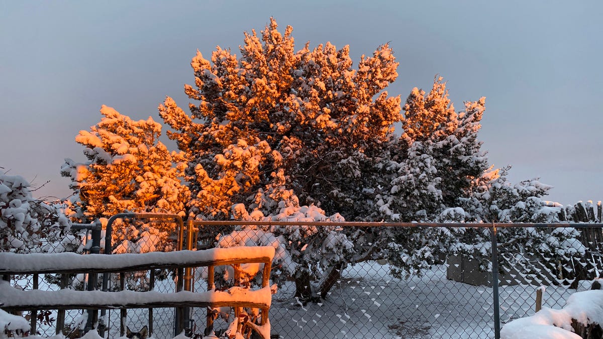 It is snowing today, but not like it is snowing to the east of us! Lots of folks think Santa Fe has a desert climate, but because we are 7000 ft up in the Rockies, we have four seasons. Our WInters are not severe. We do get snow, but most times, it melts and evaporates within 24 hours. We have about 330 days of sunshine a year.